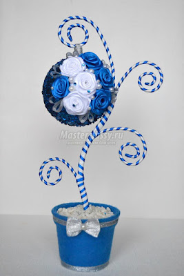 It is a simple foam Christmas ball on the Christmas tree has become the basis for a wonderful Christmas song - Topiary in blue and white colors.